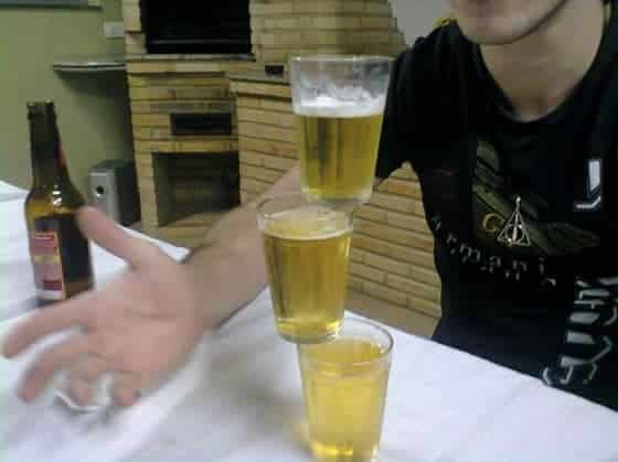 Colocar una moneda de un euro sobre su borde circular encima de una superficie horizontal sin que se caiga es posible, aunque entrañe una cierta dificultad, pero hacer lo mismo con una de un céntimo de euro, se aproxima a lo imposible. Ya sé que habrá algún experto que, tras mucho entrenamiento, lo conseguirá, como ha hecho el muchacho de la imagen con los tres vasos cargados de cerveza. Ha hecho del conjunto un todo. La imaginación juega un importante papel en la confección y consecución del experimento.